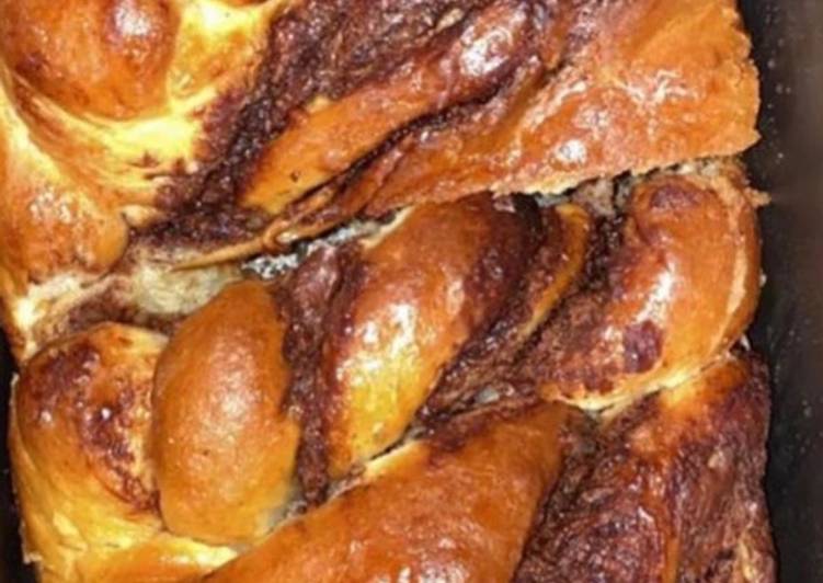 - Quand la levée est terminée, rompez la pâte avec le poing pour la dégazer, étalez-la (ajoutez 20g de farine si elle est trop collante). Ajoutez le Nutella et enroulez bien votre pâte Prenez un couteau et découpez votre pâte en 2 de haut en bas. Torsadez la et mettez la dans un moule `à gateau et laissez reposer 40 min Enfournez pour 20 min à 180 degrés.